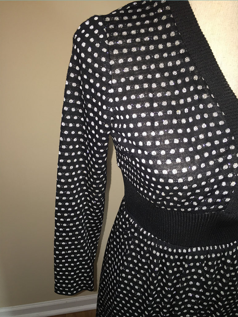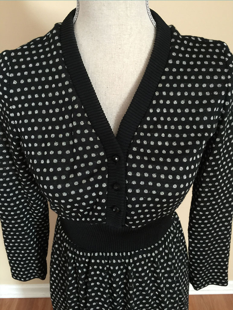 Size 9/10 Vintage Black & Silver Polka Dot Dress