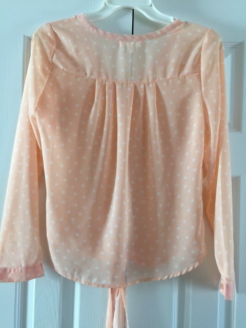 EDGE Pink Polka Dot Front Tie Sheer Shirt