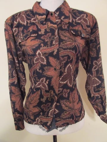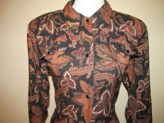 Vintage Floral Print Button Down Shirt/Blouse Features Gold Buttons and Shoulder Pads