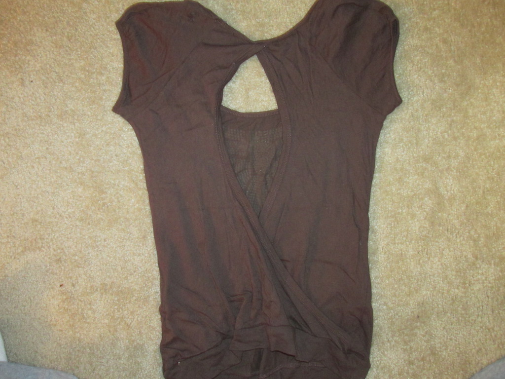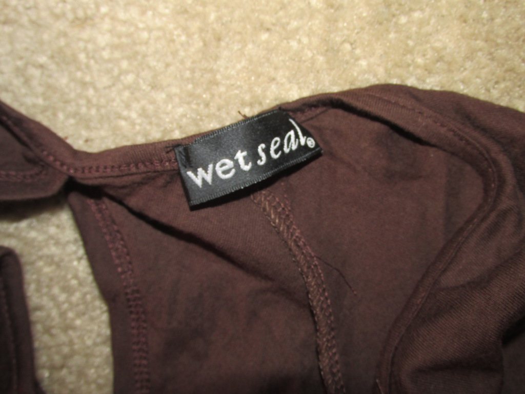 Size: M Condition: Great Condition/Gently Worn Color: Brown & Gold Designer/Brand: Wet Seal Material: 100% Cotton Made in the U.S.A. Length: 23" Bust: 32" (Stretches)