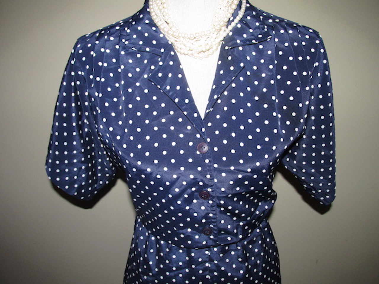 Size 8P Vintage Polka Dot Secretary Flare Dress