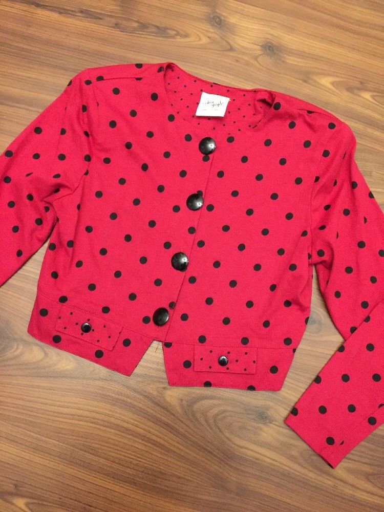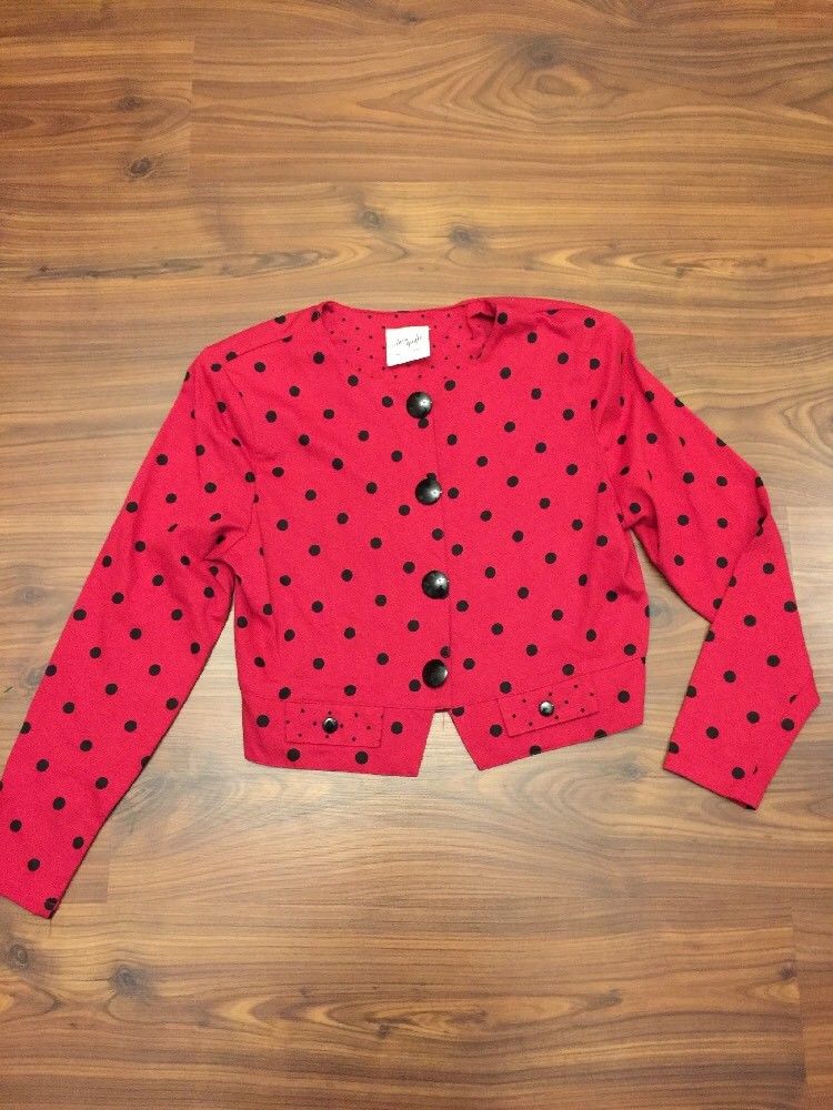 ROBIN GAYLE Vintage Red Black Polka DotCrop Top Lightweight Jacket Size 9 /10